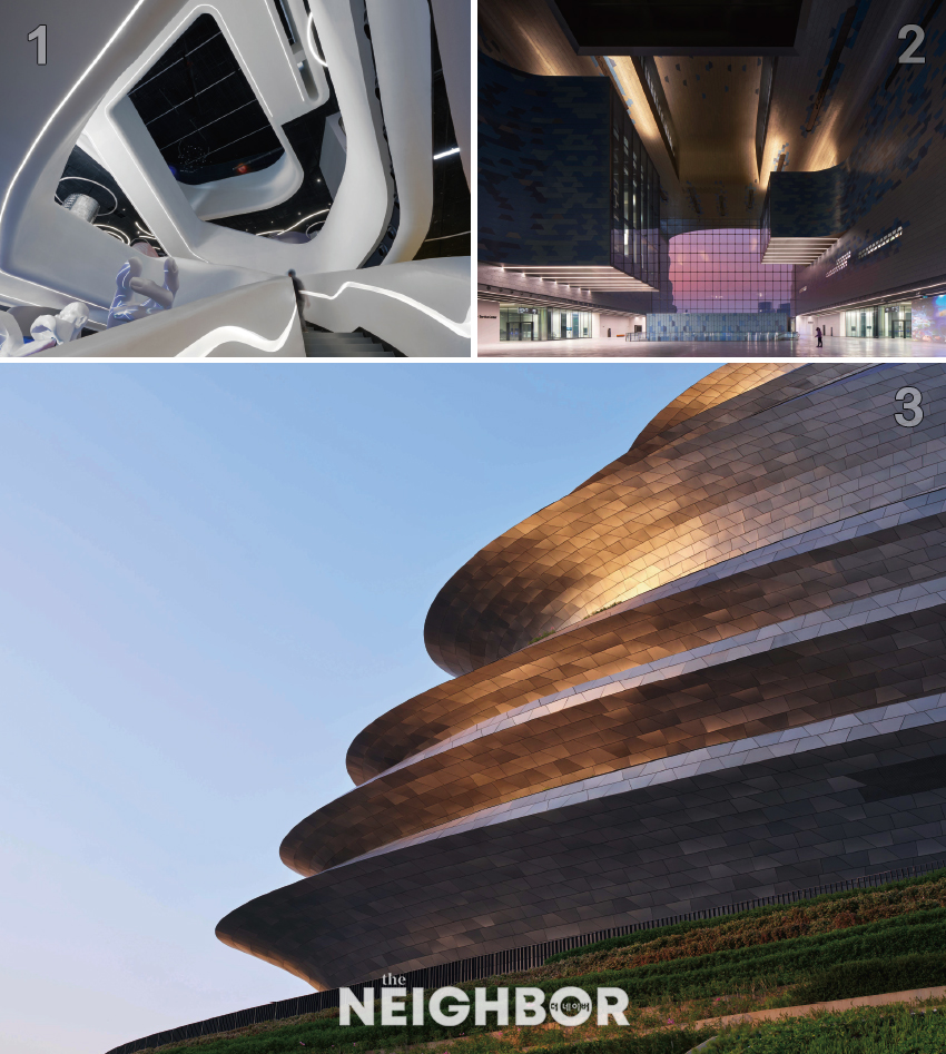 1 ÀÚÇÏ Çϵðµå °Ç¹°ÀÇ Æ¯Â¡ÀÎ °î¼± ±¸Á¶°¡ µå·¯³´Ù. Photo by Virgile Simon Bertrand. 2 °Ç¹° Áß¾Ó¿¡ °Å´ëÇÑ ¾ÆÆ®¸®¿òÀ» Á¶¼ºÇß´Ù. Photo by Virgile Simon Bertrand. 3 ½ºÅ×Àθ®½º ¼ÒÀ縦 Ȱ¿ëÇÑ °Ç¹° ¿Ü°ü. Photo by Virgile Simon Bertrand.