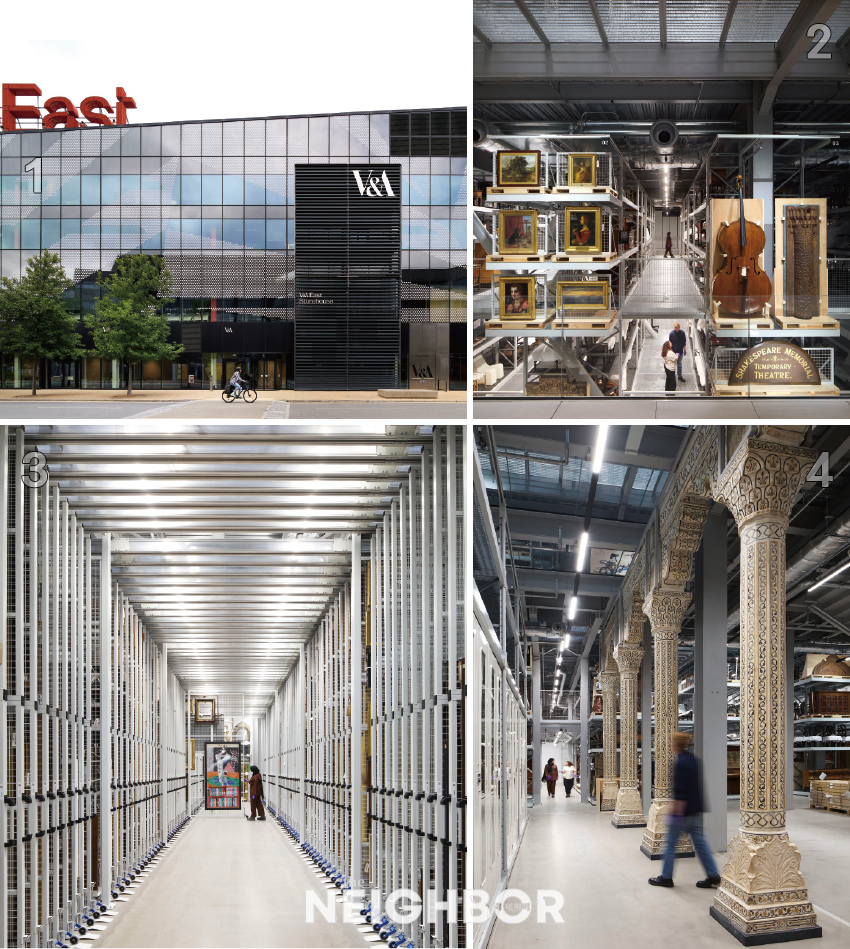 1 °Ç¹° ÀÔ±¸. Image by Hufton + Crow for V&A. 2 The Weston Collections Hall at V&A East Storehouse, including over 100 mini curated displays ‘hacked’ into the ends and sides of the storage racking. Image by Hufton + Crow for V&A. 3 Mesh roll-out storage racking at V&A East Storehouse. Available via Object Encounters visits. Image by Hufton + Crow for V&A. 4 The 17th century Agra Colonnade, an extraordinary example of Mughal architecture from the bathhouse at the fort of Agra, visible through the Weston Collections Hall glass floor, and accessible via Object Encounters at V&A East Storehouse. Image by Hufton + Crow for V&A.
