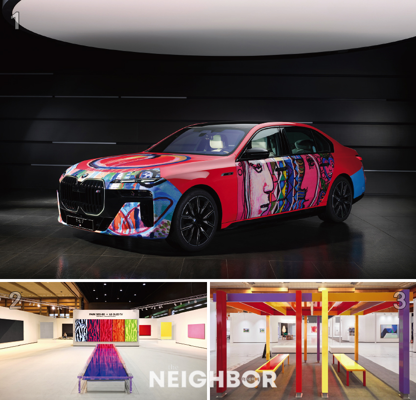 1 BMW i7 ¾ÆÆ®Ä«. 2 PARK SEO-BO×LG OLED TV, Frieze Seoul 2025. 3 Liam Gillick, Frieze Seoul 2025. Photo by Wecap Studio. Courtesy of Frieze.