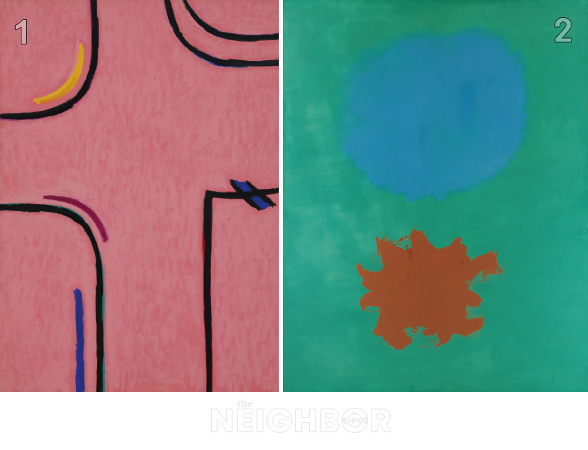 1 Kim Whanki, ‘Untitled’, 1967, Oil on canvas, 177cm×127cm. No. 96652 ©Whanki Foundation·Whanki Museum 2 Adolph Gottlieb, Expanding, 1962, Oil on canvas, 228.6cm×182.9cm. No. 45871 ©Adolph and Esther Gottlieb Foundation / Licensed by VAGA at ARS, New York