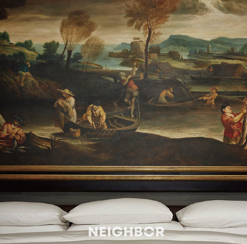 (À§)¿ÀÀÎȯ, ‘³²ÀÚ°¡ ³²ÀÚ¸¦ ¸¸³ª´Â °÷, ¼¿ï’, 2020, Çâ°¡·ç, 436×618 cm. <¤¡ÀÇ ¼ø°£> ¼³Ä¡ Àü°æ, ¿¹¼úÀÇ Àü´ç, ¼¿ï¼¿¹¹Ú¹°°ü, ¼¿ï, 2019–2020. »çÁø: ÀÛ°¡ Á¦°ø. (¾Æ·¡)±èÀ±½Å, º£´Ï½ººñ¿£³¯·¹ <¿Ü±¹ÀÎÀº ¾îµð¿¡³ª ÀÖ´Ù> Àü½Ã Àü°æ, 2024.4.20–11.24. © Kim Yun Shin »çÁø: ¾Èµå·¹¾Æ ·ÎÁ¦Æ¼, ÀÛ°¡ ¹× ±¹Á¦°¶·¯¸®, ¸®¸¸¸ÓÇɰ¶·¯¸® Á¦°ø