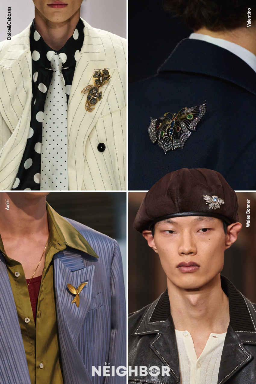 °ú°Å À¯·´¿¡¼ Æ©´ÐÀ̳ª µÎ²¨¿î ¸ÁÅ並 °íÁ¤Çϱâ À§ÇØ ¾²ÀÎ ºê·ÎÄ¡ÀÇ Á¸Àç°¨Àº »õ ½ÃÁð¿¡µµ °ÇÀçÇÏ´Ù. ¶óÆçÀ̳ª ¸ðÀÚ¸¦ Àå½ÄÇÏ´Â °Ç ¹°·Ð, ¹ß·»Æ¼³ëó·³ ÀçŶ µÚ¿¡ ³ªºñ ¸ð¾ç ºê·ÎÄ¡¸¦ ¾ñÀº »ö´Ù¸¥ ¿¬Ãâµµ µîÀåÇß´Ù. È·ÁÇÑ ÀλóÀÇ ºê·ÎÄ¡°¡ ºÎ´ã½º·´´Ù¸é ÀçŶÀ̳ª ÄÚÆ®º¸´Ù´Â ½ÉÇÃÇÑ Æ¼¼ÅÃ÷¿¡ ijÁÖ¾óÇÏ°Ô ¸ÅÄ¡ÇØº¼ °Í. Ç㸮 ºÎºÐ ÀÚ¶ôÀ» °íÁ¤ÇÏ¸é ¿øÇÏ´Â ½Ç·ç¿§À¸·Îµµ ¿¬ÃâÇÒ ¼ö ÀÖ¾î, ÀÛÁö¸¸ °ÇÑ ¾×¼¼¼¸® ¿ªÇÒÀ» ÅåÅåÈ÷ ÇÑ´Ù.