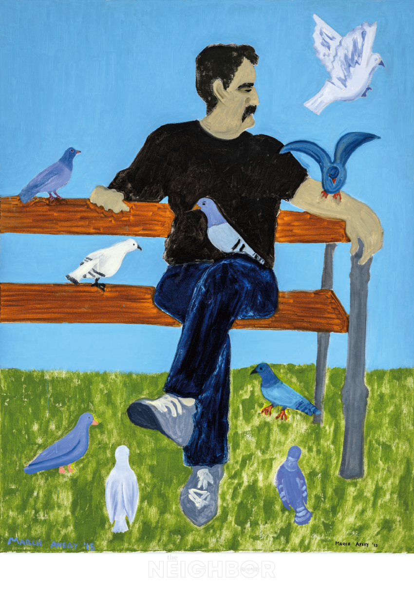 March Avery, ‘Bird Man’, 2015, Oil on canvas, 121.9×96.5cm. Courtesy the artist and Esther Schipper, Berlin/Paris/Seoul. Photo ©Hyun Jun Lee ©2026 March Avery / VG BildKunst.
