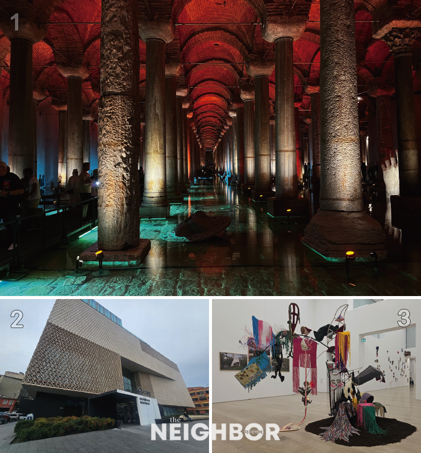 1 µ¿·Î¸¶ Á¦±¹ ½Ã´ëÀÇ ÁöÇÏ ±ÃÀü, ¿¹·¹¹Ùź »ç¶óÀÌ. 2 Çö´ë¹Ì¼ú°ü ¾Æ¸£Å׸£ ¹ÂÁö¾ö (Arter Museum). 3 ¾Æ¸£Å׸£ ¹ÂÁö¾ö Àü½Ã Àå¸é, <´Ò¹Ù¸£ ±Í·¹½´: º§ºª ½ºÅ×¾î (Nilbar Güreş: Velvet Stare)>.